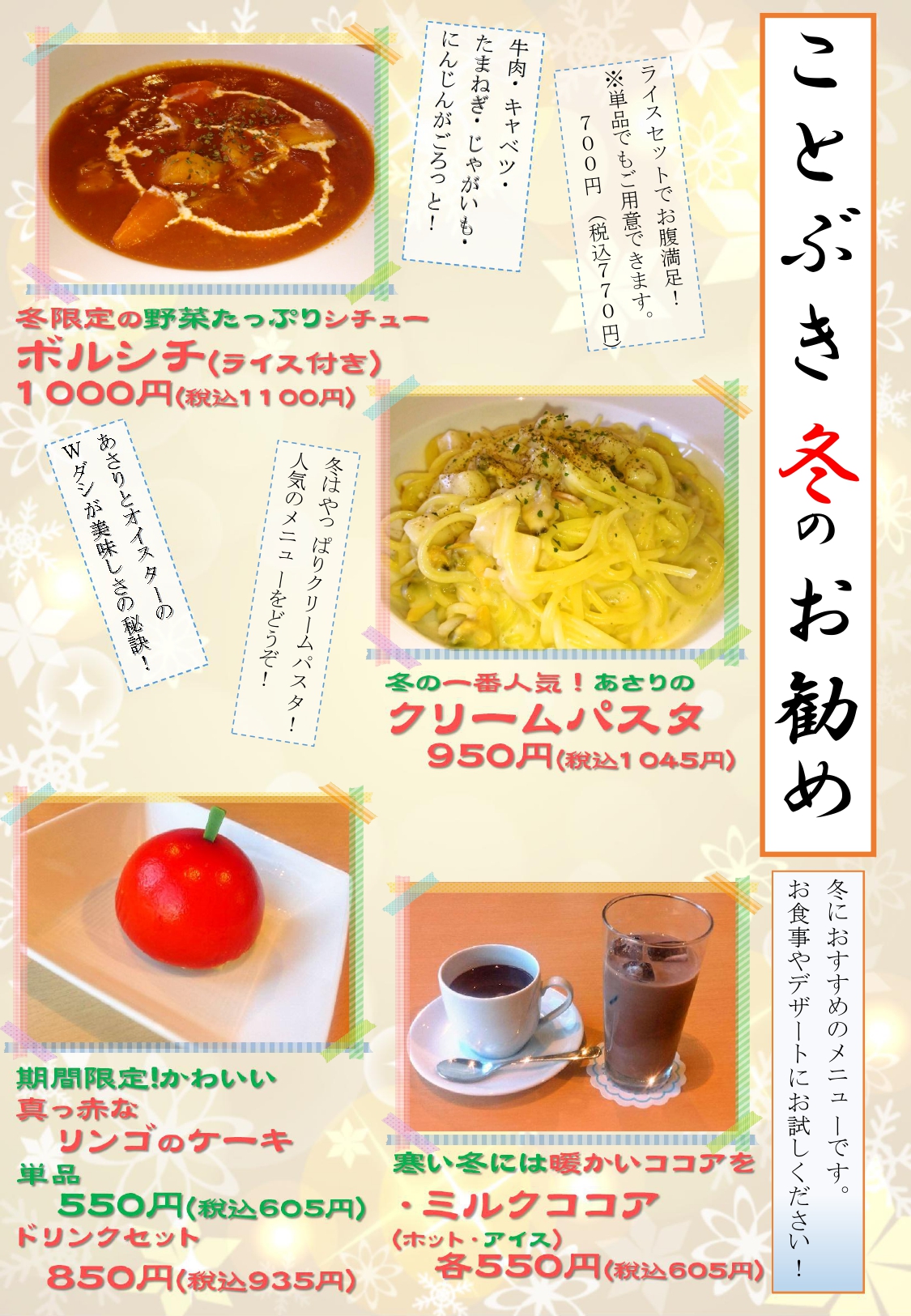 冬のことぶきは、あったかメニューと楽しいゲームでお待ちしています!ぜひお友達やご家族と一緒に遊びに来てくださいね。