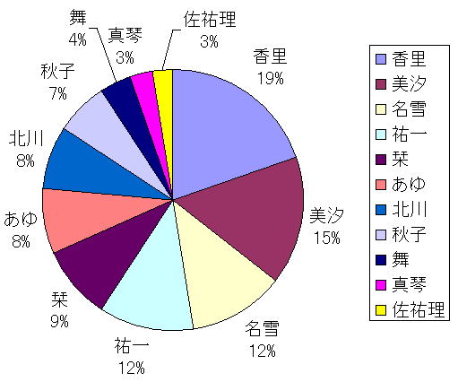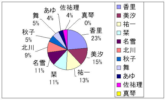 佐祐理「さて、今度はメインキャラ回数・メインキャスト部門の発表です。一緒にキャラ分布も発表しますよー」