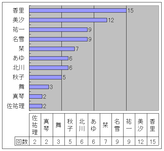 佐祐理「この表は、複数回(2回以上)参加した人のメインキャラの集計です。間違えないでくださいね」