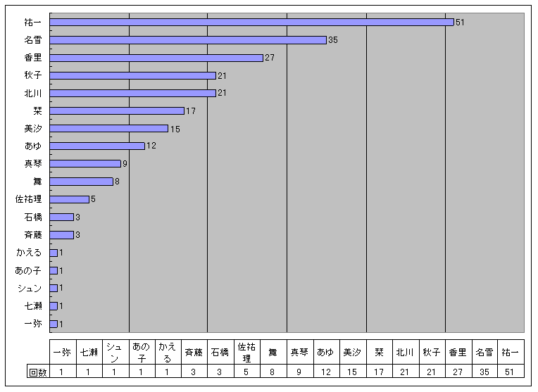 佐祐理「敬称略で、回数順・文字コード順に並んでいますよー」