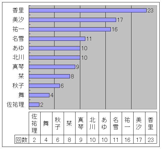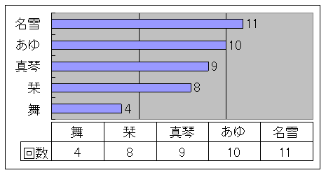 真琴「前回は、上から、名雪10回、あゆ8回、真琴8回、栞7回、舞3回って言う順番だったわよ」