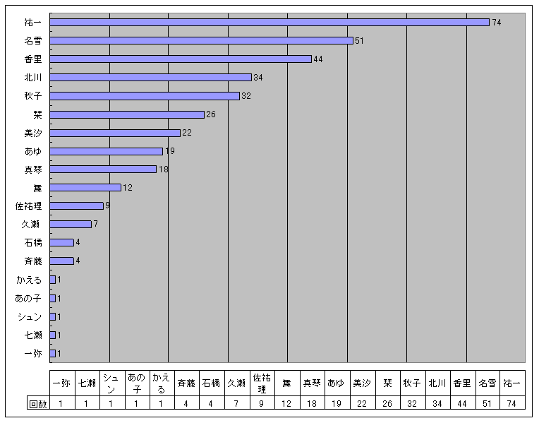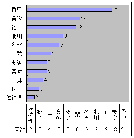 2005/06/20 Ver1.10 雪凪ゆうさんの登場キャラを修正。それに伴い登場キャラ回数のグラフも修正