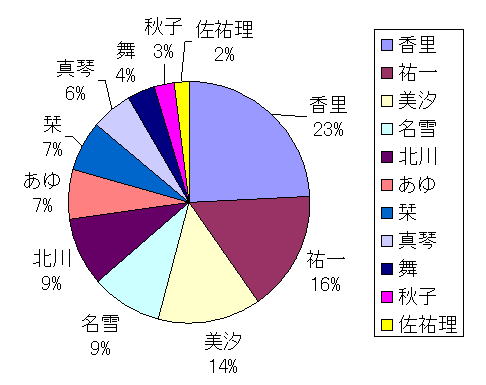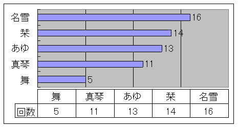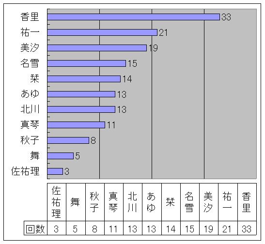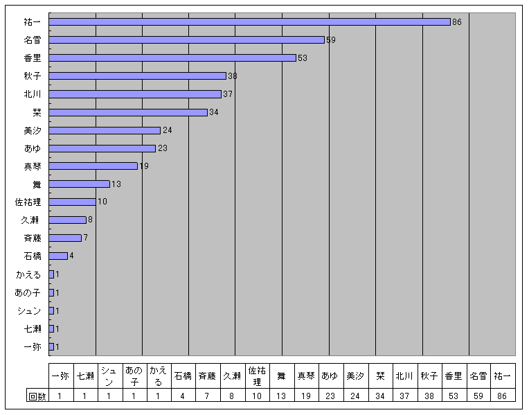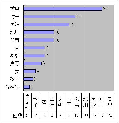 香里「前回は、上から、名雪11回、あゆちゃん10回、真琴ちゃん9回、栞8回、川澄さん4回って言う順番だったわよ」