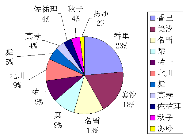 あゆ「割合で見ると、名雪さんが断トツで、ボク、栞ちゃん、香里さんは横並びなんだね」